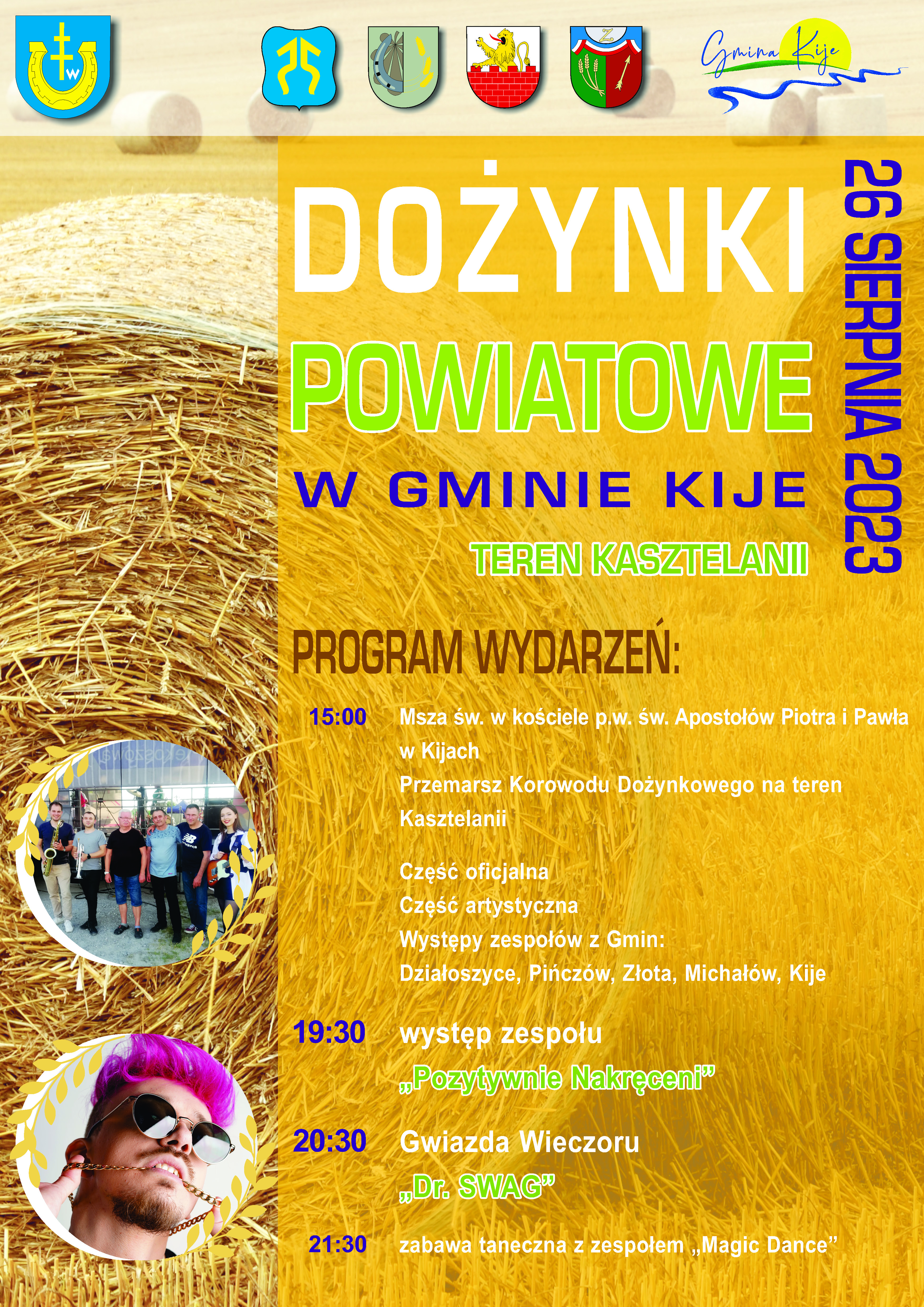 Zapraszamy na Dożynki Powiatowe, które w tym roku odbędą się na terenie Gminie Kije w dniu 26 sierpnia.