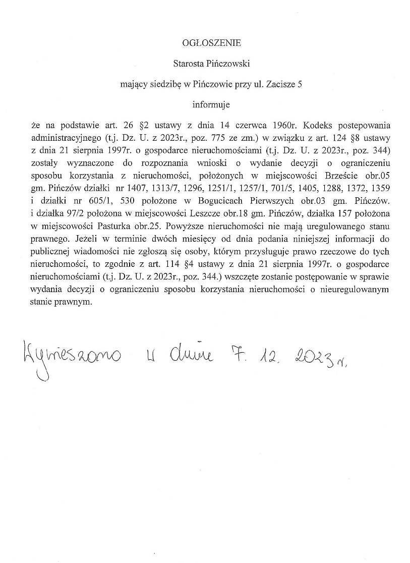 Konkurs na prowadzenie punktu prawnego na terenie Powiatu Pińczowskiego w 2024 roku