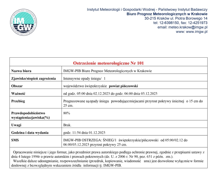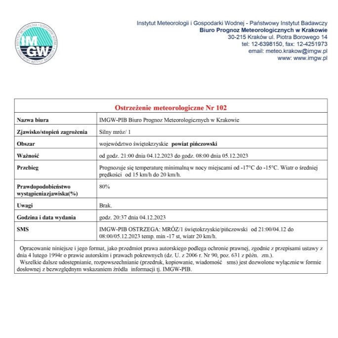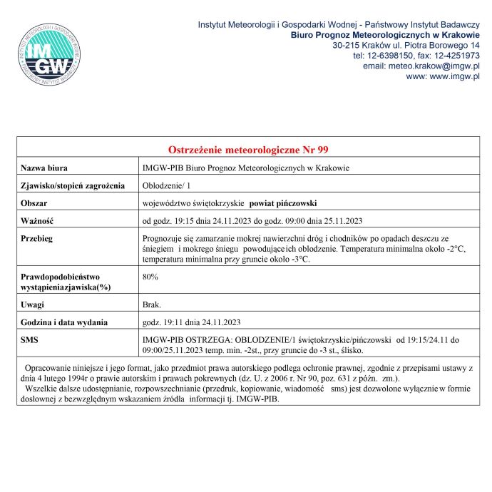Opady marznące i silny wiatr - kolejne ostrzeżenia