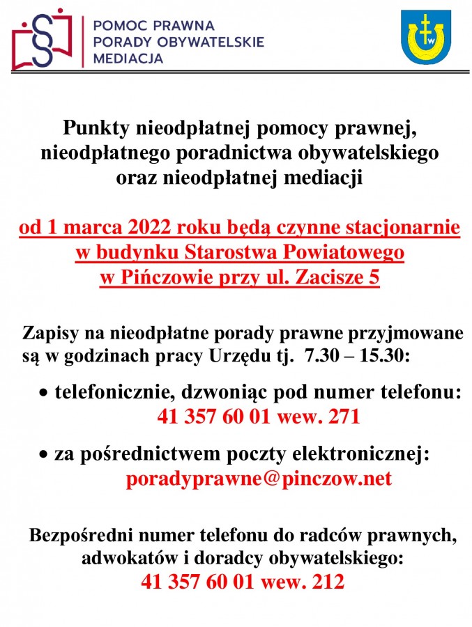 Informacja dotycząca Punktu Porad Prawnych
