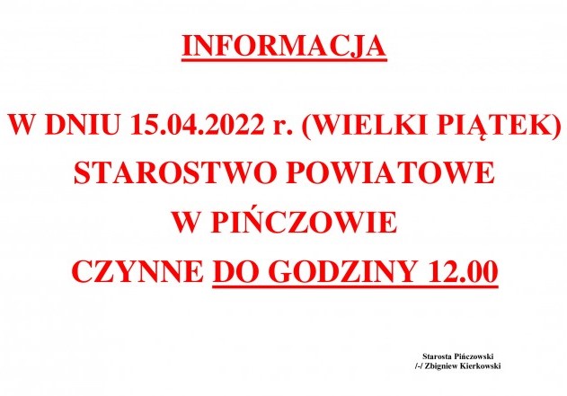 Obwieszczenie Starosty Pińczowskiego